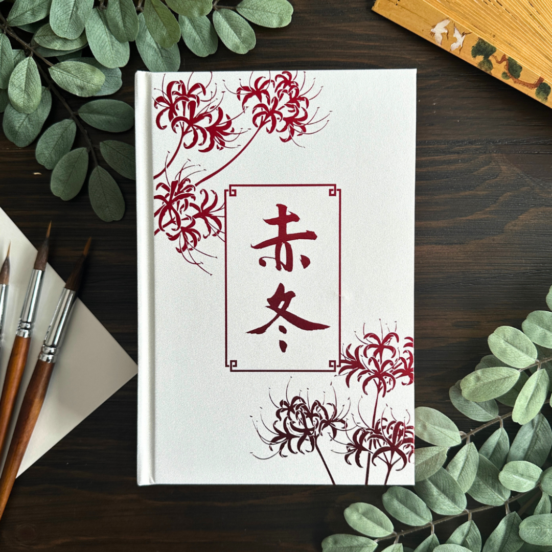 - NEW! Spider lily and nine-tailed fox designs stamped in crimson foil on the cloth cover